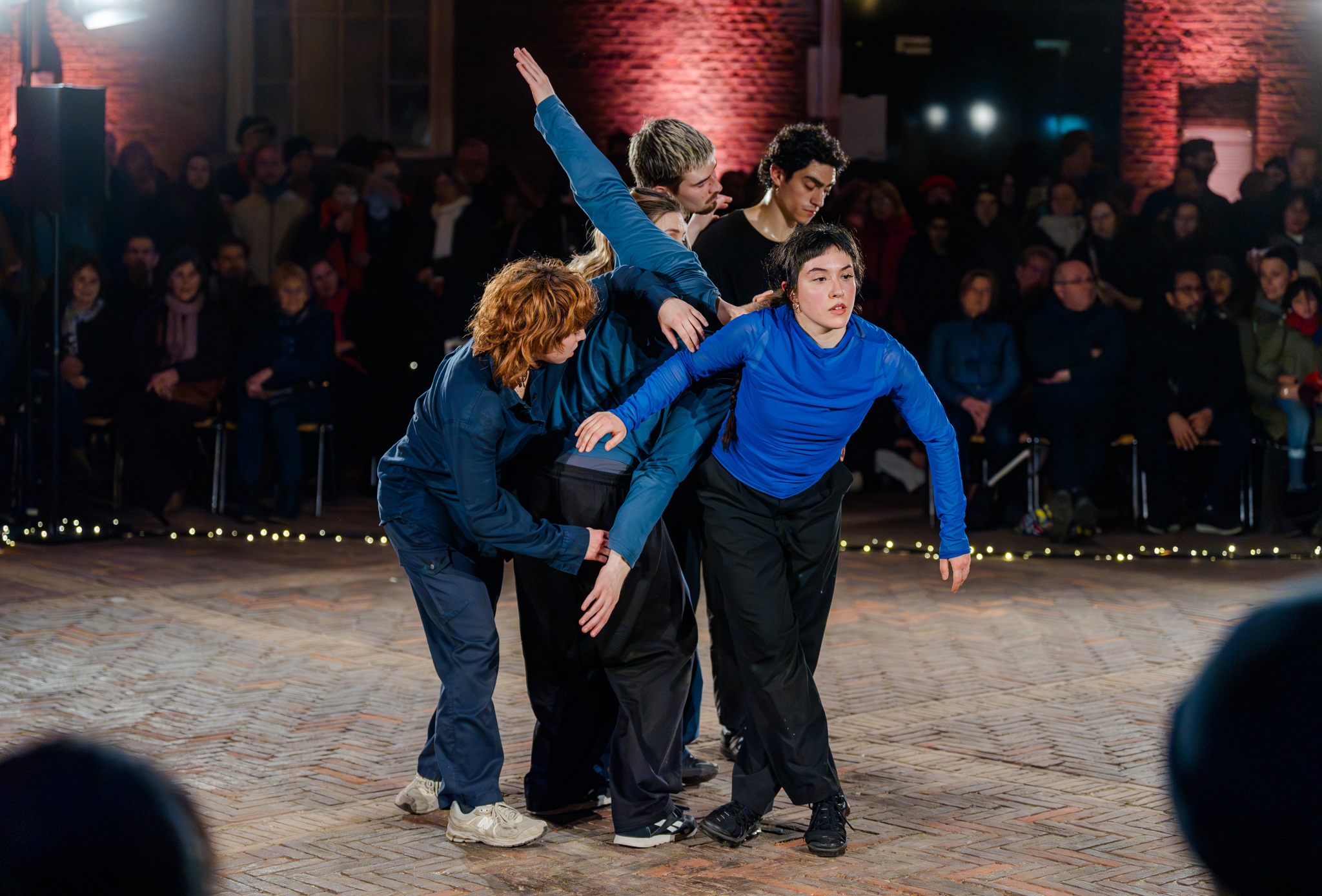 De dans en muziek is speciaal gemaakt voor vanavond. Een unieke ervaring dus. En als je er niet bij bent, heb je het écht gemist. De dansers nemen je mee in een spel van nabijheid en afstand, in bewegingen die raken, spiegelen, confronteren en verbinden. Wat begint als een zoektocht naar de ander, eindigt in een moment van herkenning. Een intieme dansvoorstelling in een bijzondere setting. De voorstelling duurt ongeveer 45 minuten en wordt op 9 december drie keer gespeeld: Om 19.00 uur, 20.00 uur en 21.00 uur. Je kunt op elk moment binnenlopen om een plekje te zoeken.