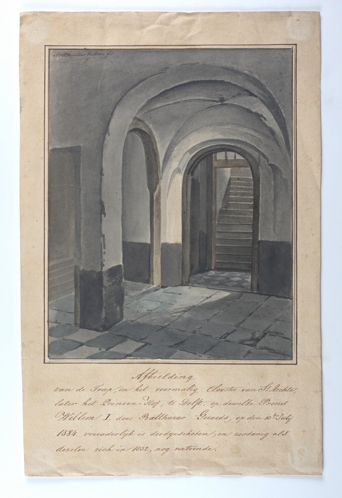 'Afbeelding van de Trap, in het voormalig Clooster van St. Aechte, later het Princen-Hof te Delft, op dewelke Prins Willem I, door Balthazar Gerards, op den 10den Julij 1584 verraderlijk is doodgeschoten; en zoodanig als dezelve zich in 1832 nog vertoonde'