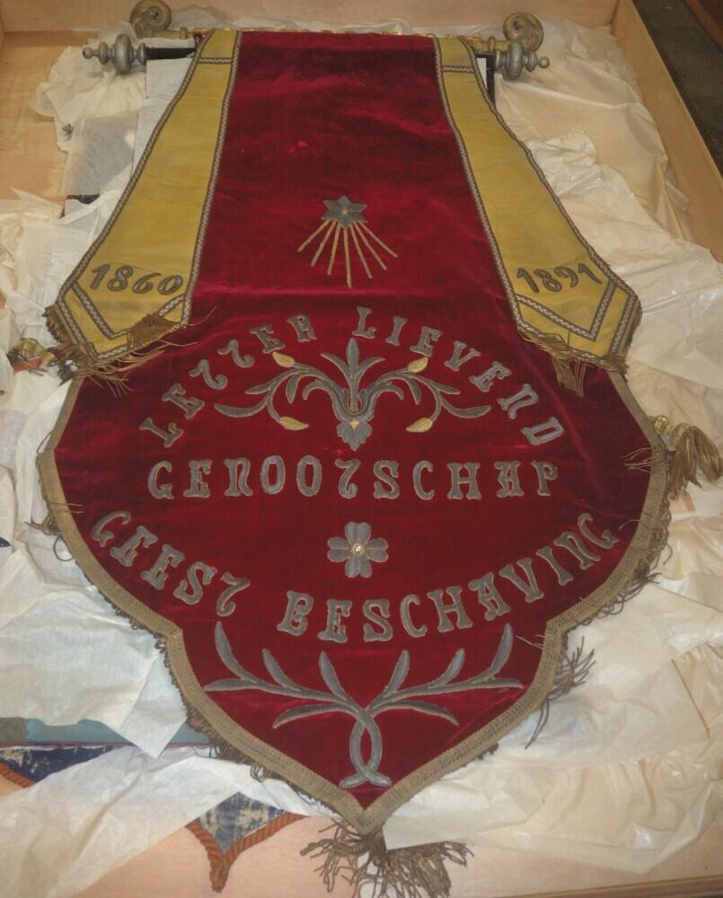 Vaandel 'Letter lievend Genootschap Geest Beschaving 1860 - 1891'