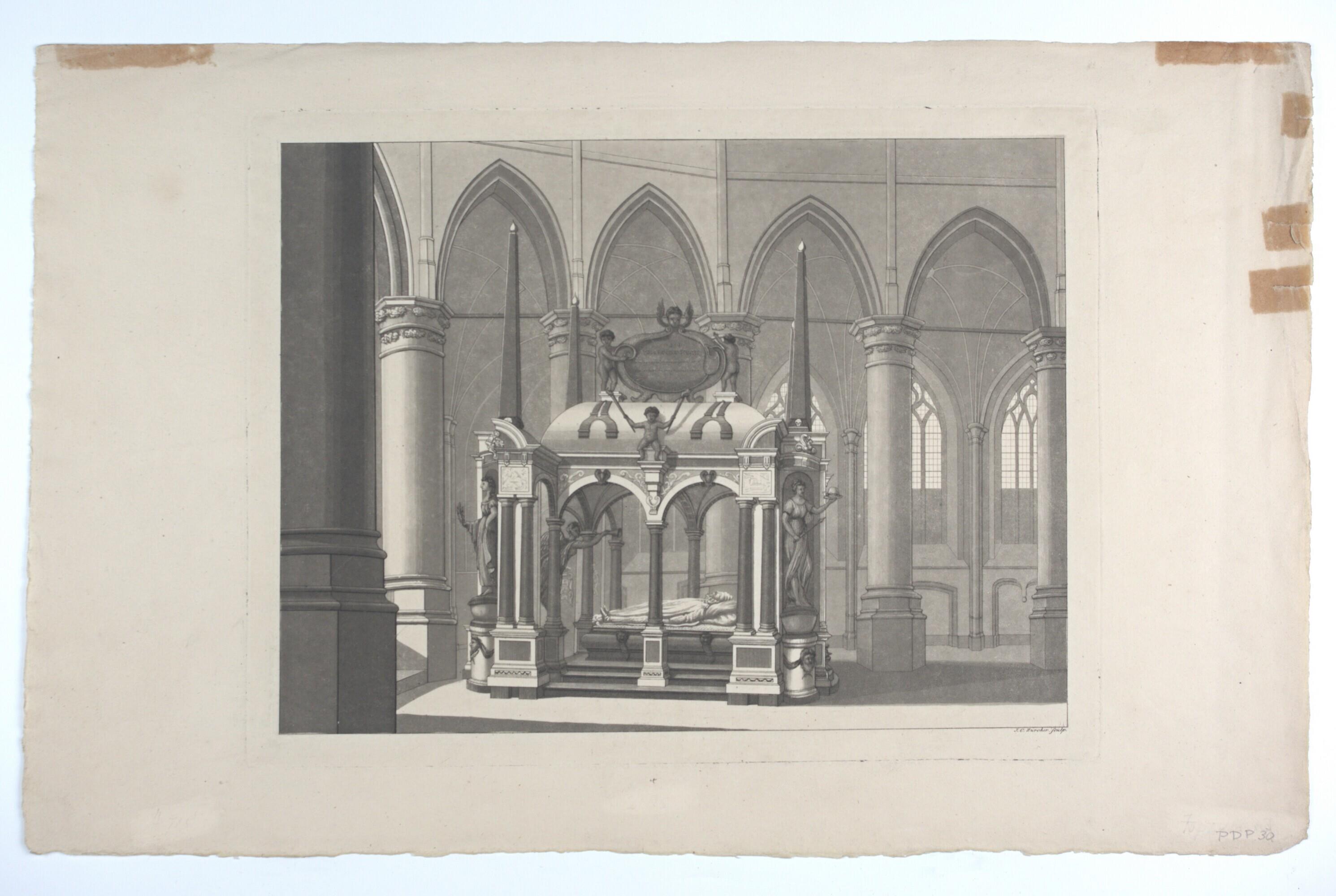 Gravure met een afbeelding van het praalgraf van Prins Willem I.