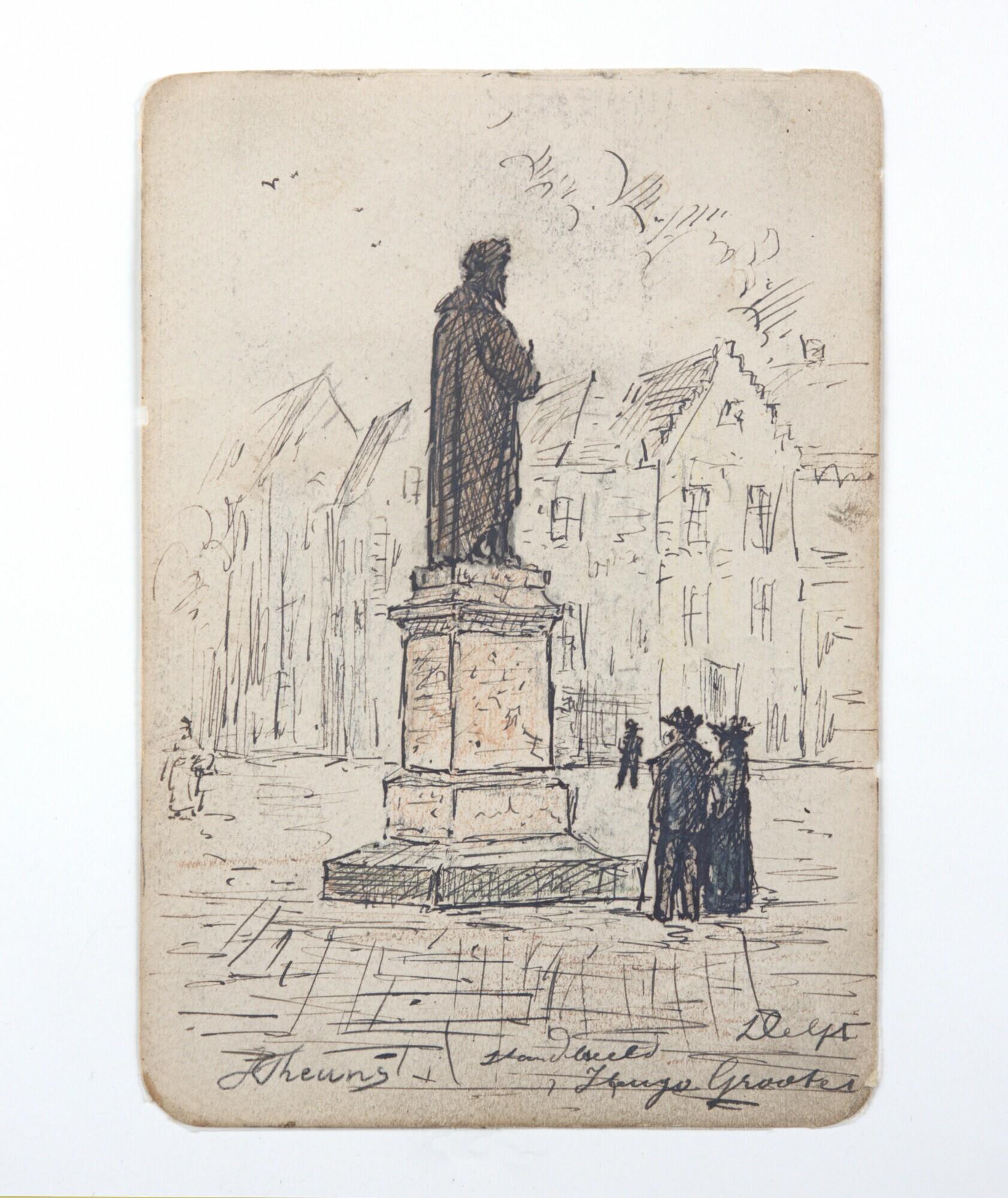 - SignatuurJTheuns (l.o.) standbeeld Hugo Grootes Delft (r.o.)