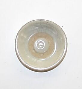Het schaaltje is licht gewelfd en heeft een ongeglazuurde ring rond het plat en een ongeglazuurde bodem en standring.