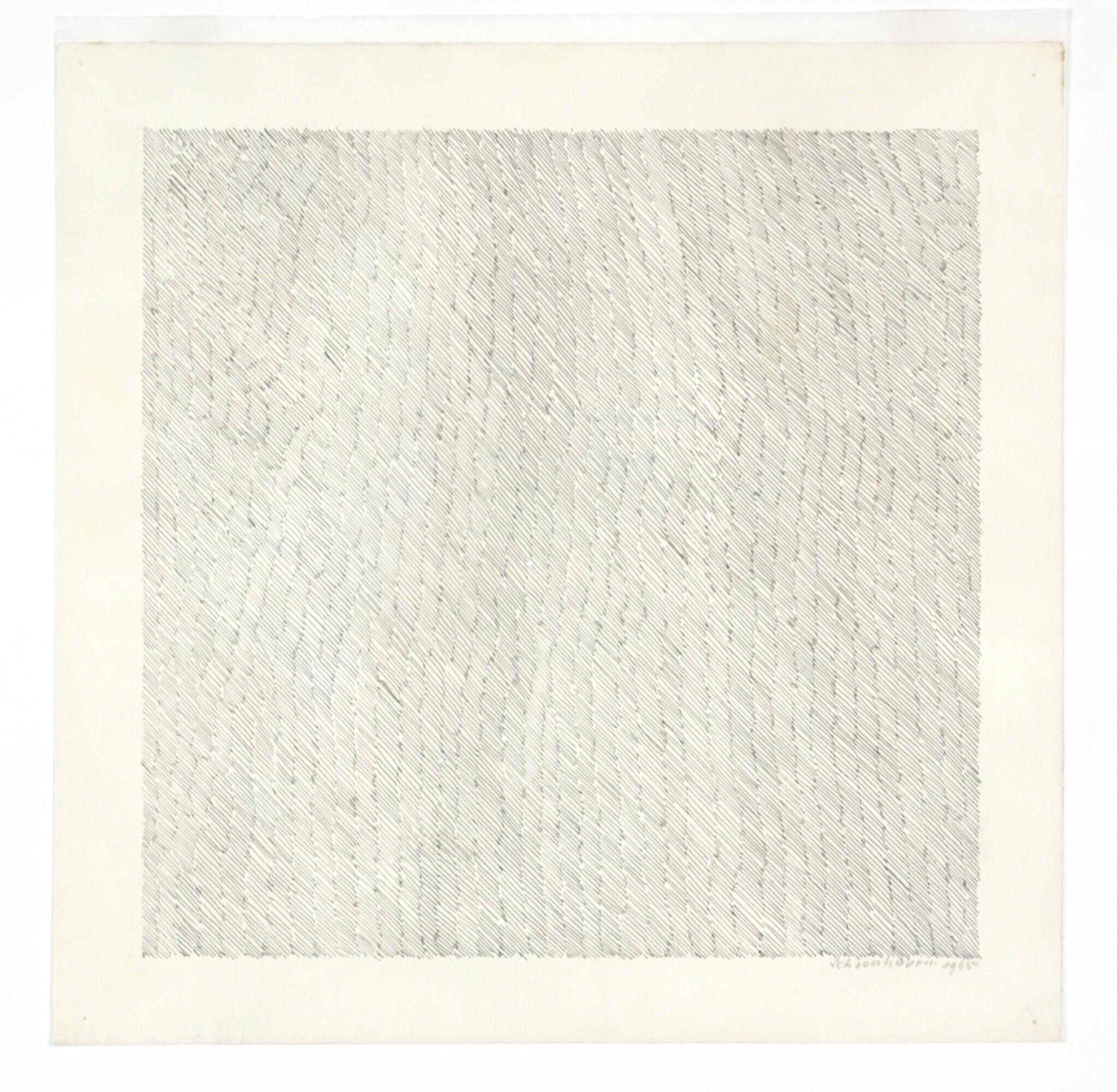 Jan J Schoonhoven 1965 'HK arcering 6' 21x21 cm. betekend (achterzijde)