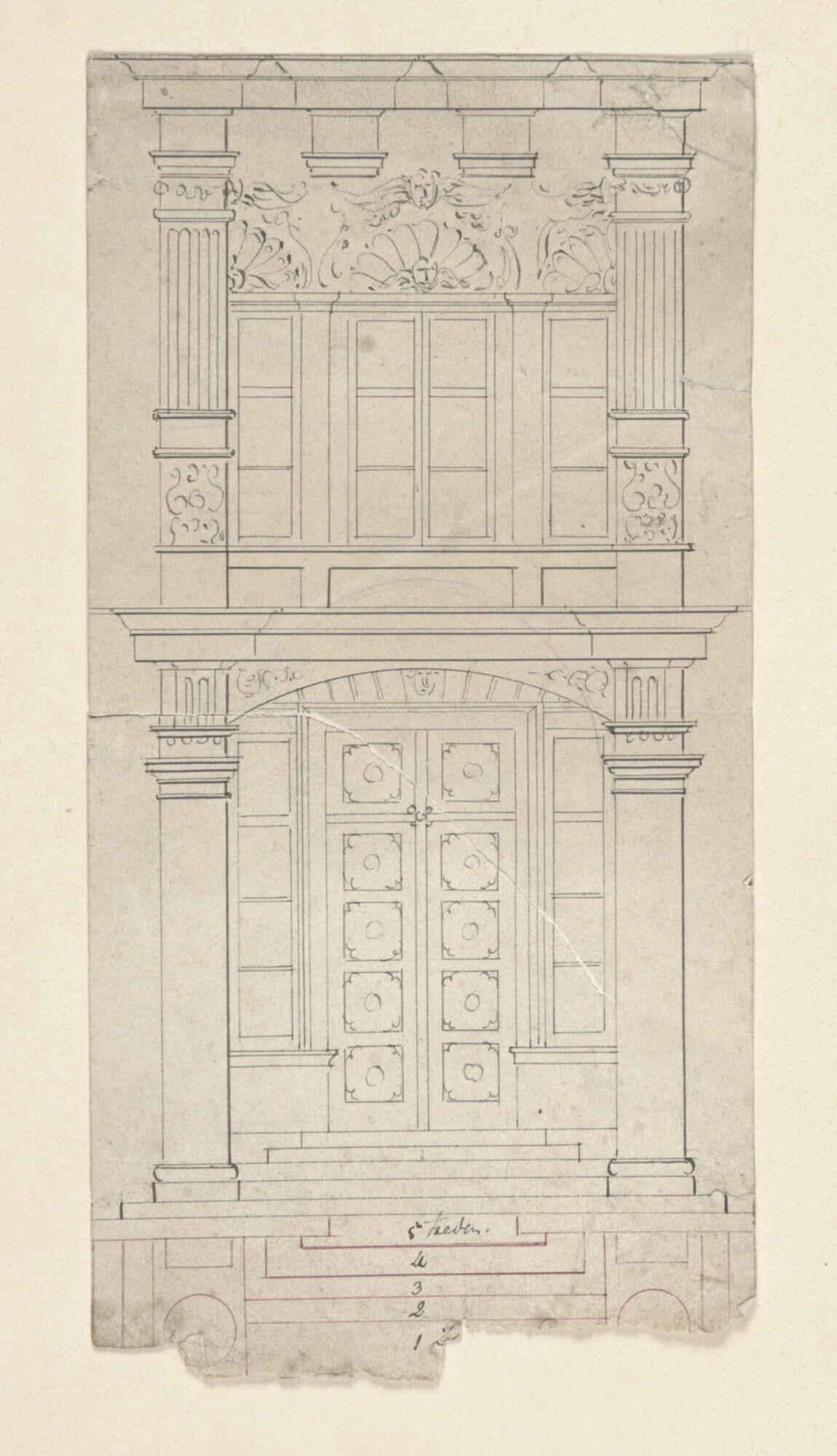 'Tegenwoordige hoofdingang van het Stadhuis te Delft [...]'