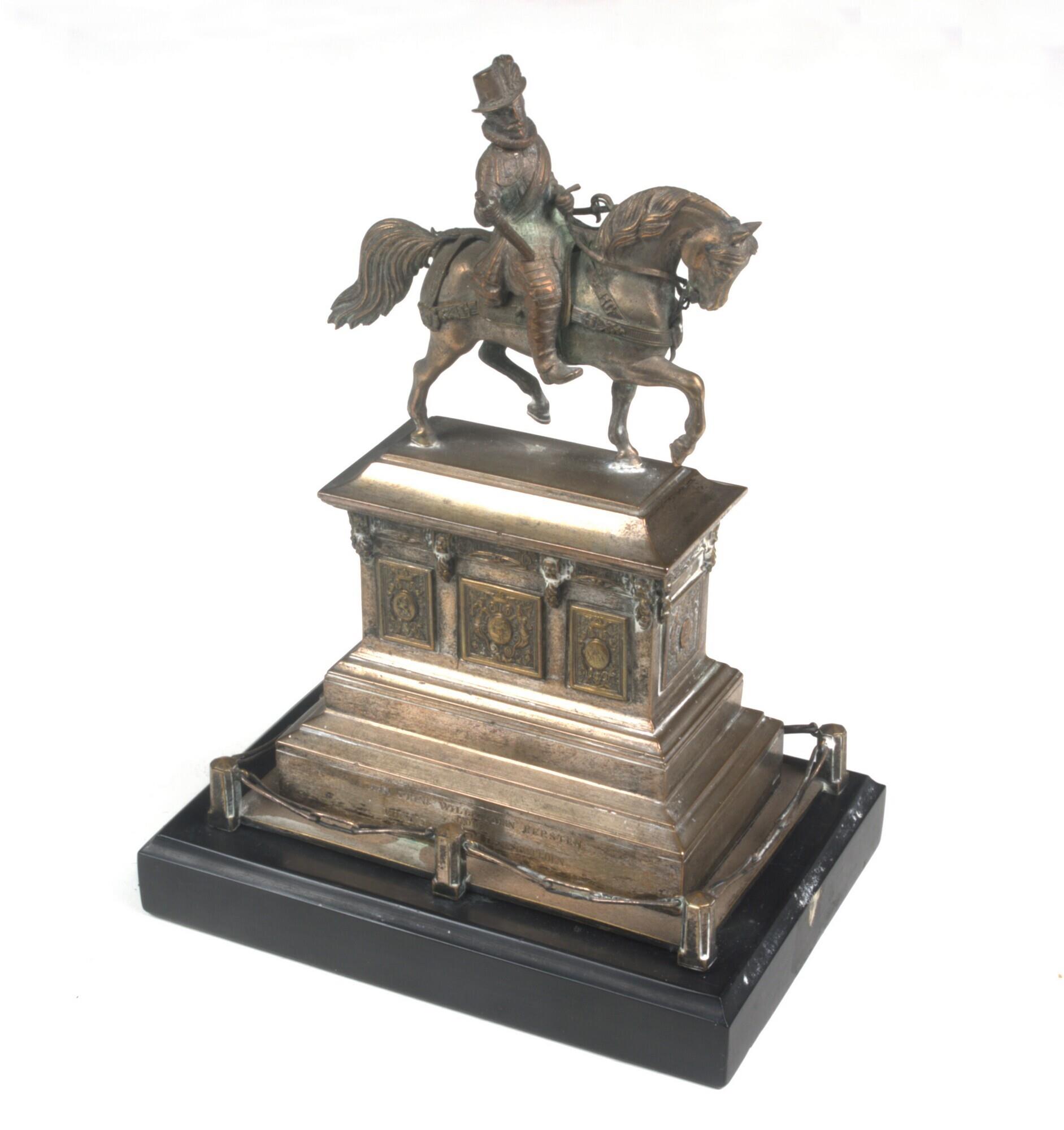 Ruiterstandbeeld, zilveren reproductie van ruiterstandbeeld van Willem van Oranje van Émilien de Nieuwerkerke (Noordeinde, Den Haag)