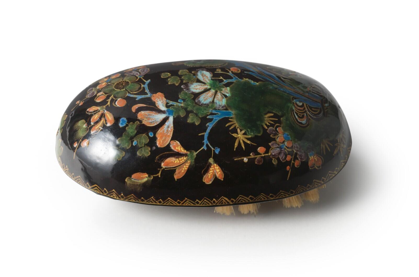 - Een zwart Delftse faience borstelrug.