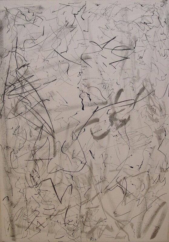 Beschrijving van het (kunst)werk: Grijze en zwarte lijnen lopen kris kras door elkaar