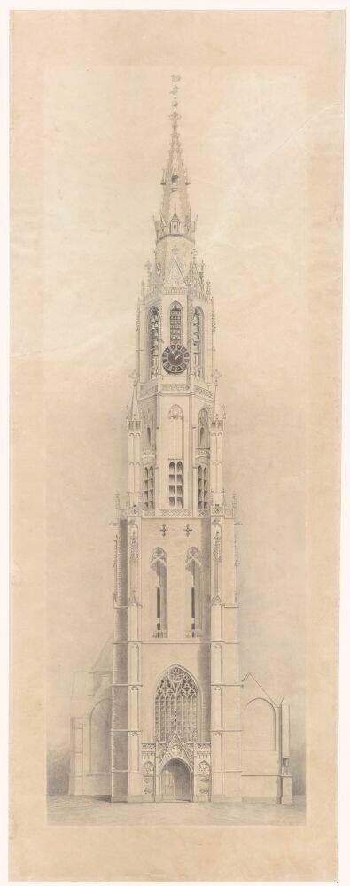 De toren van de Nieuwe Kerk, waarschijnlijk een ontwerp voor een nieuwe spits.