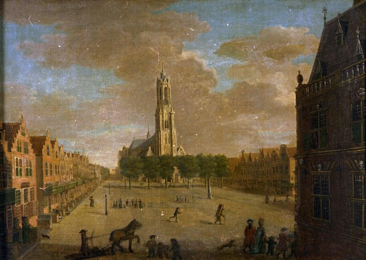 De Markt met op de achtergrond de Nieuwe Kerk en rechts een gedeelte van het Stadhuis.
