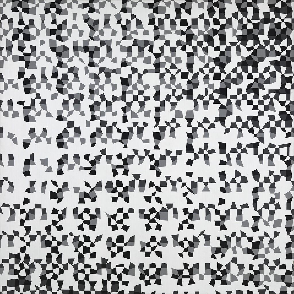 - Signatuurgeen; Procesmatige ordening (18) '76 vorm/plaatsbepaling op raster # Jaap van den Ende '76 (a.z., verf)
