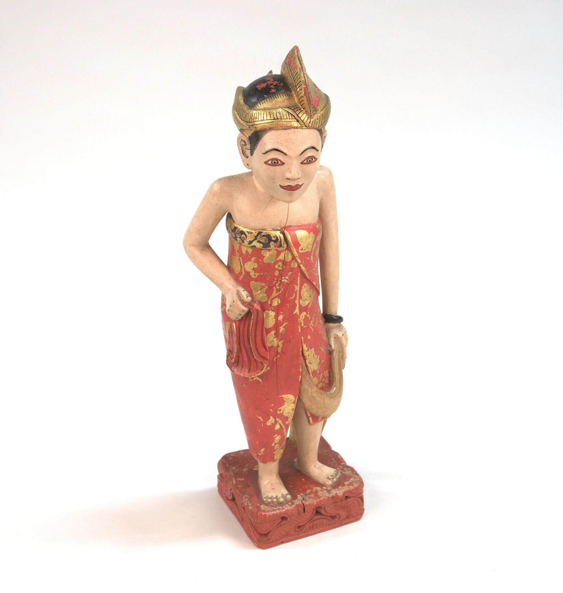 Gepolychromeerd houten beeld van een adellijke Balinese man in trouwkostuum.