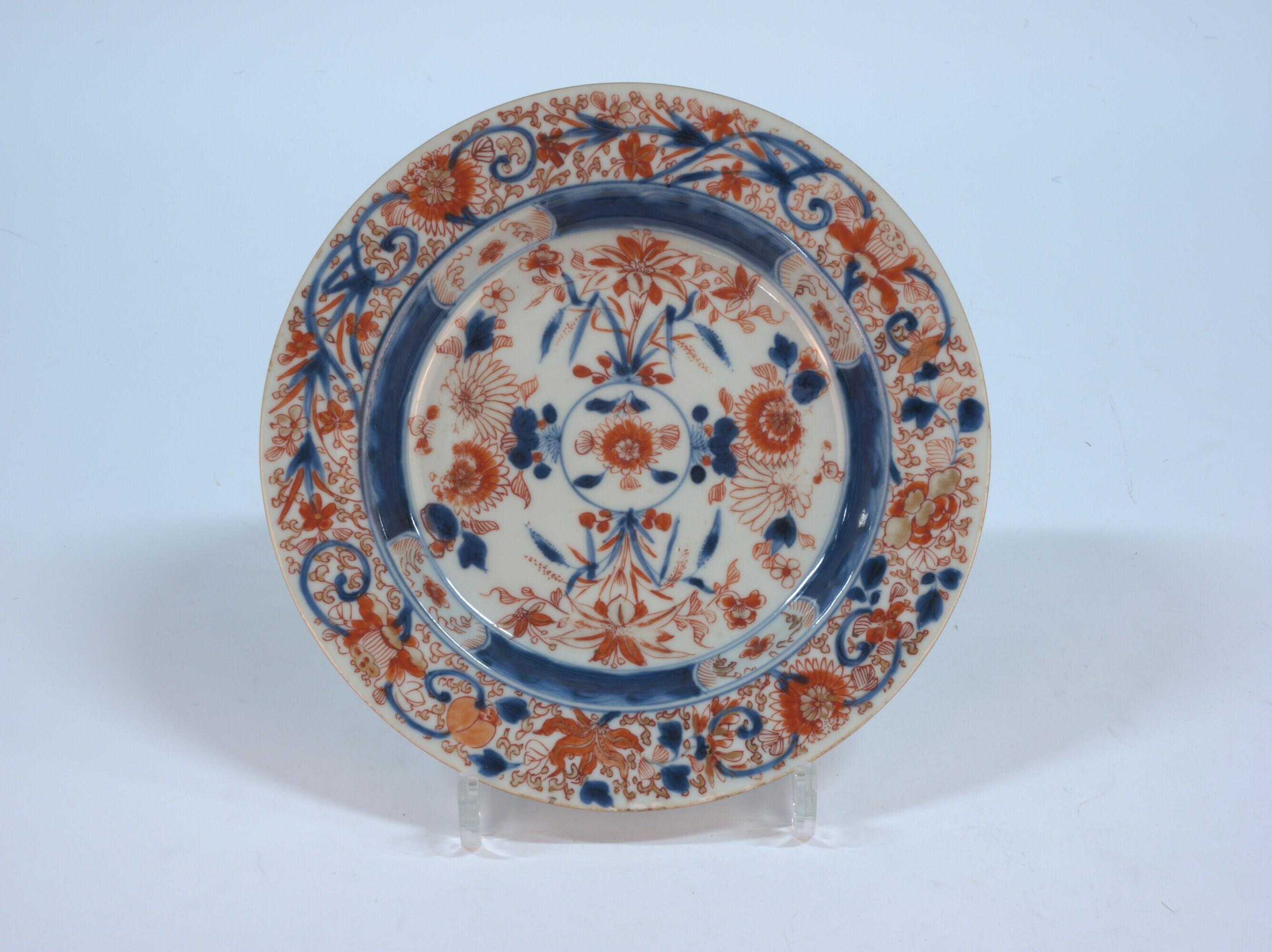 - porselein (decoratie in Imari-techniek in blauw, roze en bovenglazuur ijzerrood en goud)