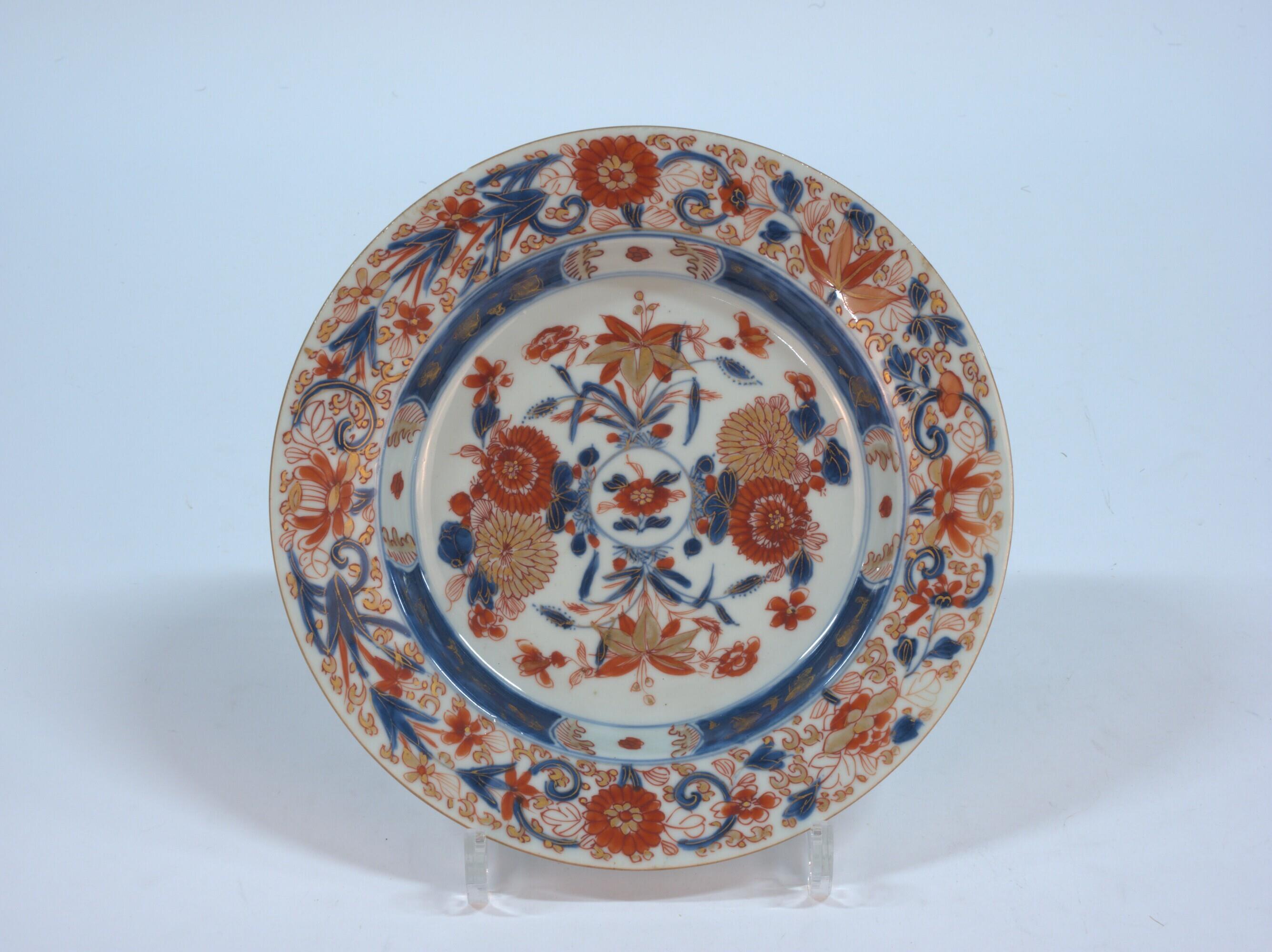 - porselein (decoratie in Imari-techniek in blauw, roze en bovenglazuur ijzerrood en goud)