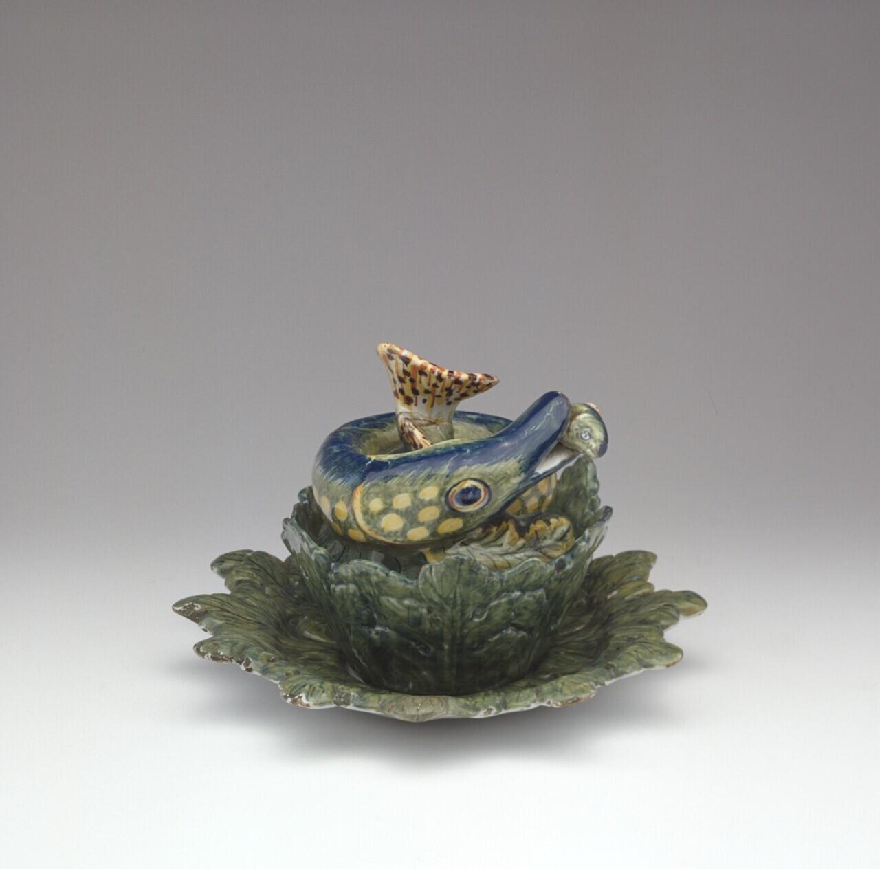 Deze snoek is een ware blikvanger op een gedekte tafel. Dat is ook zeker de bedoeling van de Delftse plateelbakkers, die deze terrines maken volgens de mode. In de 17de en 18de eeuw wordt dineren steeds belangrijker en worden er bijzondere objecte...