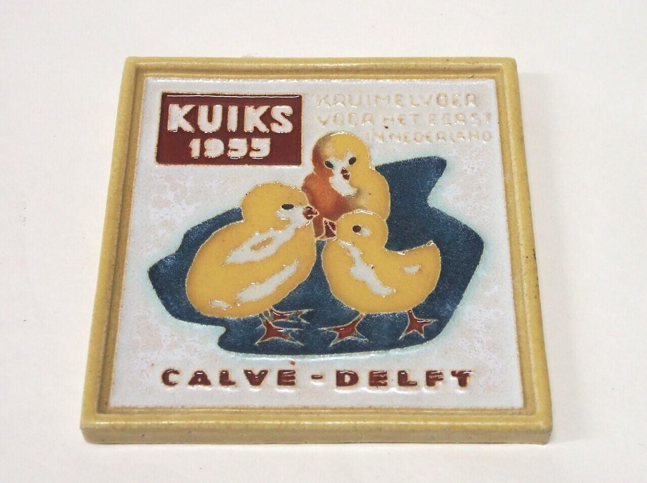 Cloisonné tegel 'Kuiks 1955 kruimelvoer voor het eerst in Nederland Calvé-Delft'