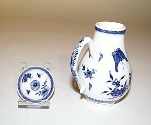 Het melkkannetje is peervormig en heeft een driehoekige sneb, een gegolfd oor, een standring en een gewelfd deksel. De buitenrand is gedecoreerd met een band van swastikavormig servetwerk. Boven de standring loopt een band met gestileerde golven. ...