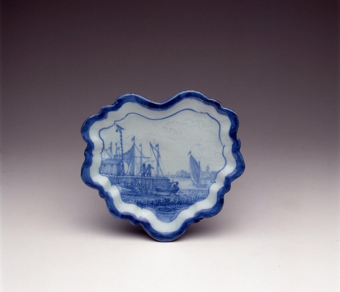 - Een Delftse faience schaaltje met een geaccoleerde hart vorm.