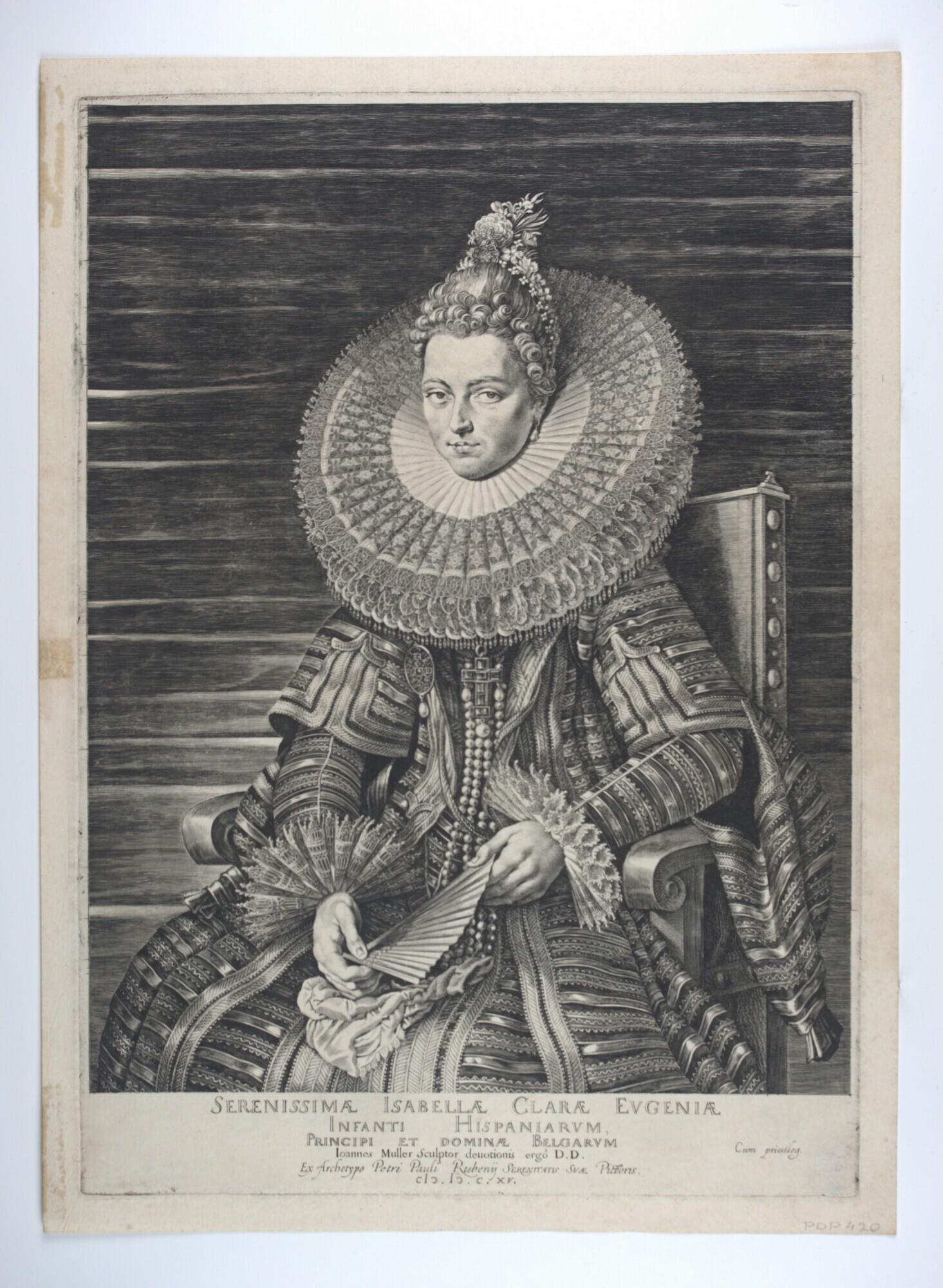 - SignatuurIoannes Muller Sculptor deuotionis ergô D.D. Ex Archetypo Petri Pauli Rubenij Serenitatis Suæ Pittoris CIC.IC.C.XV. (middenonder); Cum privileg. (rechtsonder)