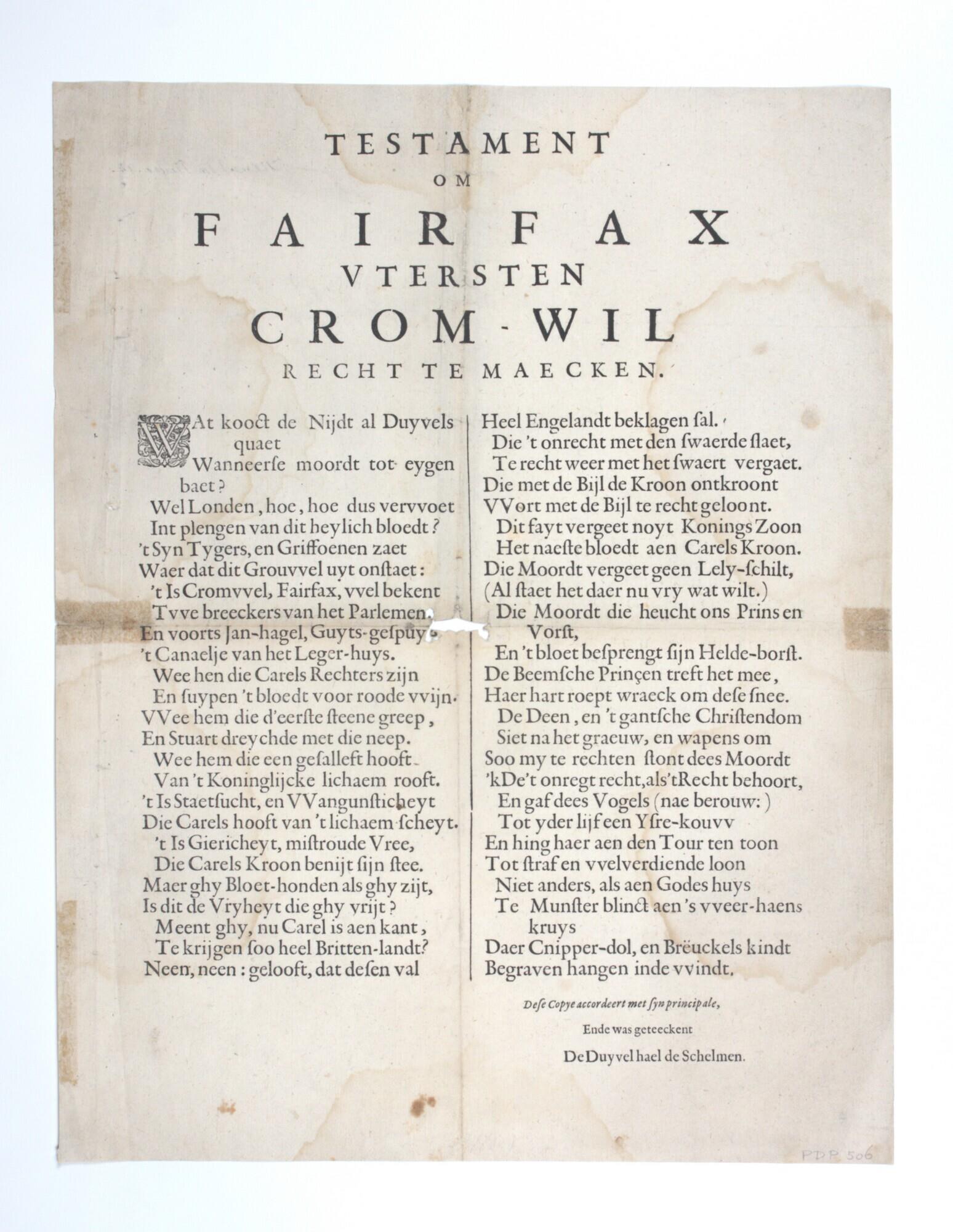 - Testament om Fairfax utersten CROM-WIL recht te maecken