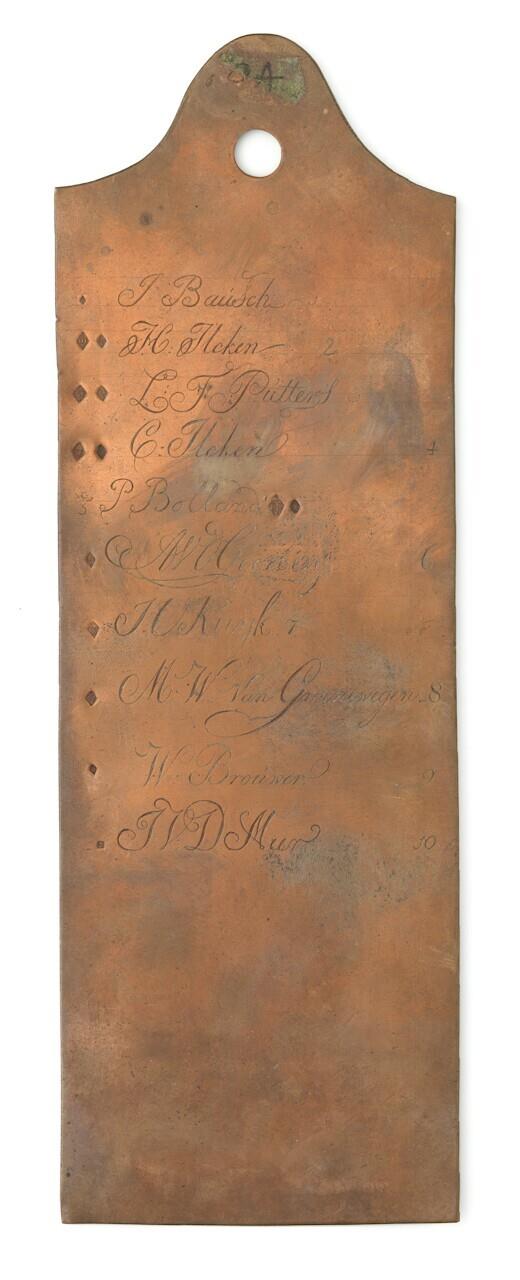 Namen vermeld op de voorzijde: J. Bausch; H. Heken (Ilcken); L.F. Putters; C. Heken (Ilcken); P. Bolland; D. v.d. Goorberg(h) (Goorbergen); J. v. Kuyk (Kuijk); M.W. van Groenewegen; W. Brouwer; J. v.d. Meer
