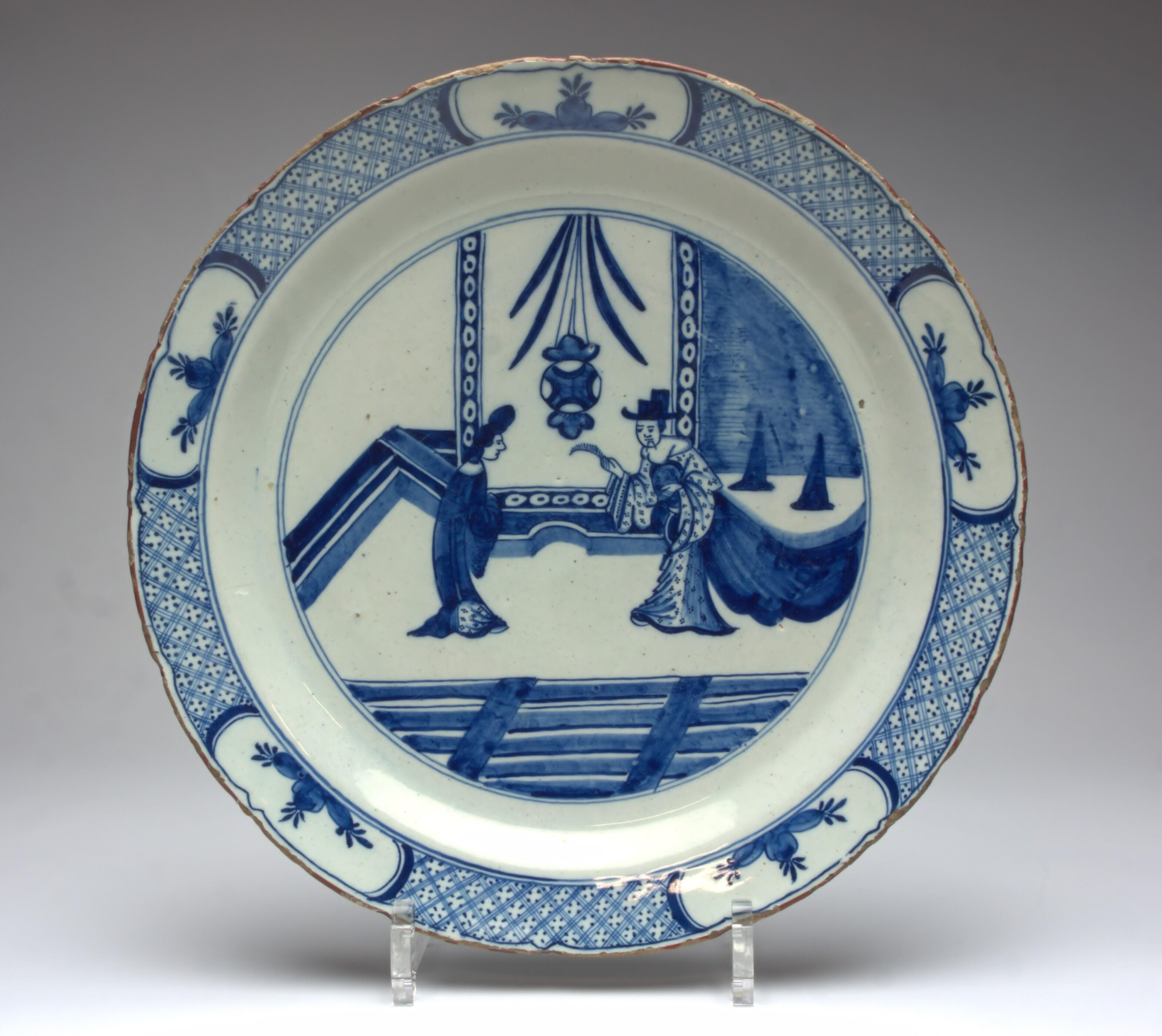 Bord gedecoreerd met een Chinoiserie voorstelling