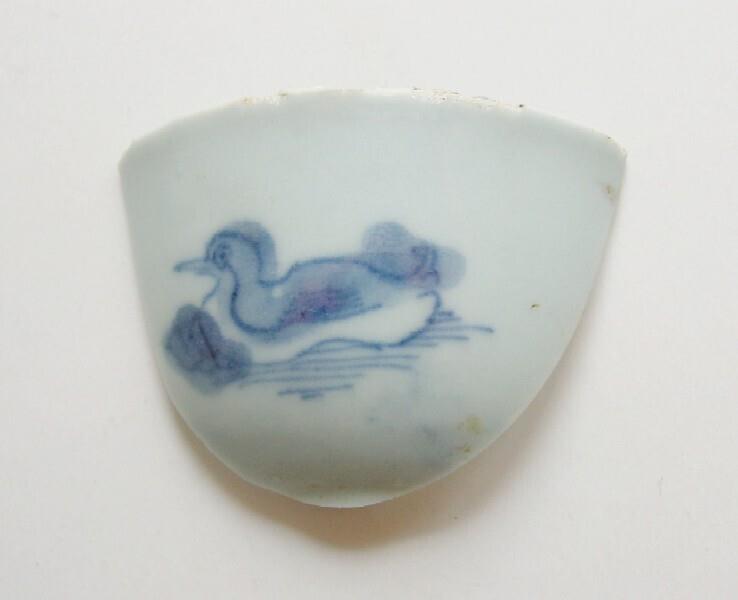 Deel van een Qianlong kom van porselein met een watervogel.