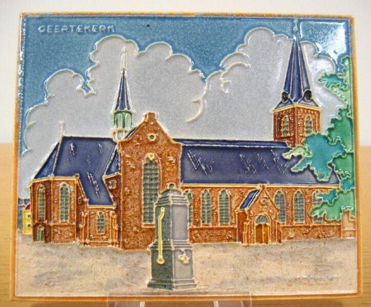 Een kerk draagt tezamen met de mensen de wonden, die het leven slaan kan. - Dit heeft de Geertekerk in de zeven eeuwen van haar bestaan geducht ondervonden.- Maar het is of telkens een beschermende Hand werk uitgestoken: "Dit Huis blijft voor Mijn Dienst bewaard."- Door veler offervaardigheid en met vereende kracht herstellen wij de Geertekerk. - Zij zal opnieuw haar functie kunnen vervullen, als monument en kerk, ten teken voor mensen, tot zegen voor allen. - Door deze tegel te kopen heeft U de Remonstrantse Gemeente van Utrecht geholpen om de Geertekerk te herbouwen uit haar verval. - Zij wil een levende kerk zijn, in het midden van onze levende en groeiende stad. - (achterkant)