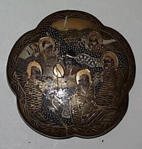 - aardewerk, glazuur, decoratie in Satsuma-techniek in wit, groengrijs, roze, rood, bruin, zwart en goud