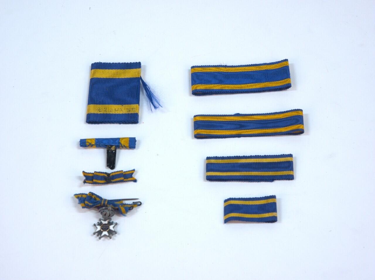 Diverse lintjes waarvan een met medaille, Orde van de Nederlandse Leeuw. Deze heeft de vorm van een ster met Nederlandse kroon. In het midden het opschrift: 'VIRTUS NOBILITAT' (deugd adelt) en achterop de Nederlandse Leeuw.