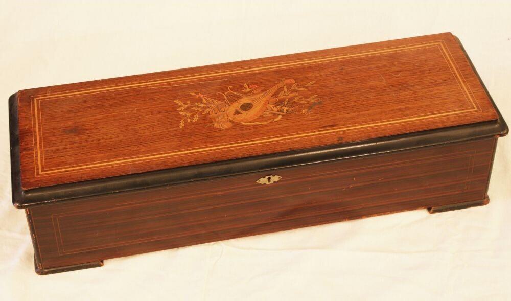 - beukenhout, imitatie palissander (romp), geschilderd, dek gelijmd palissander fineer met ingelegd werk van diverse lichte houtsoorten