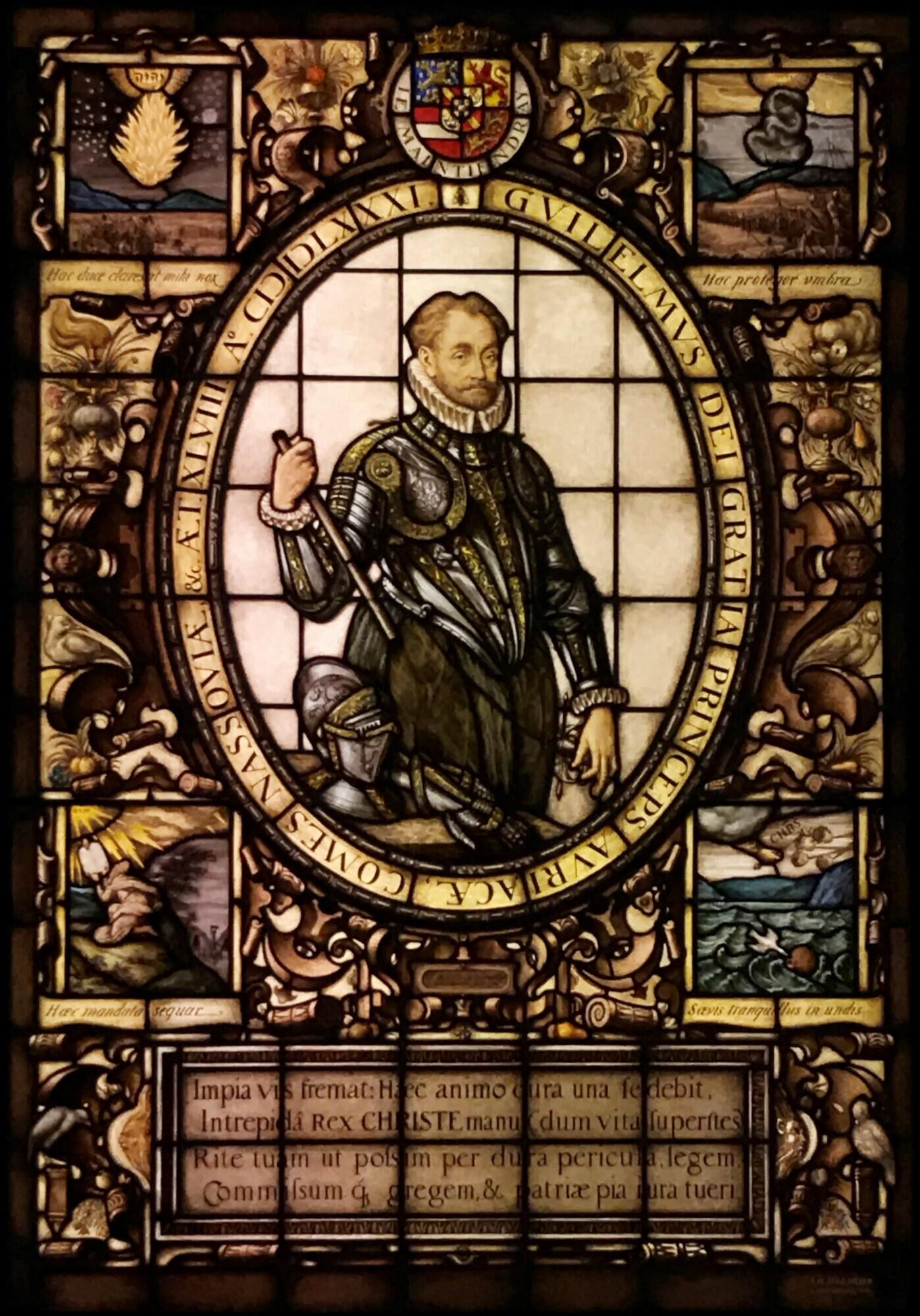 - Glas-in-loodraam met medaillonportret van Willem van Oranje