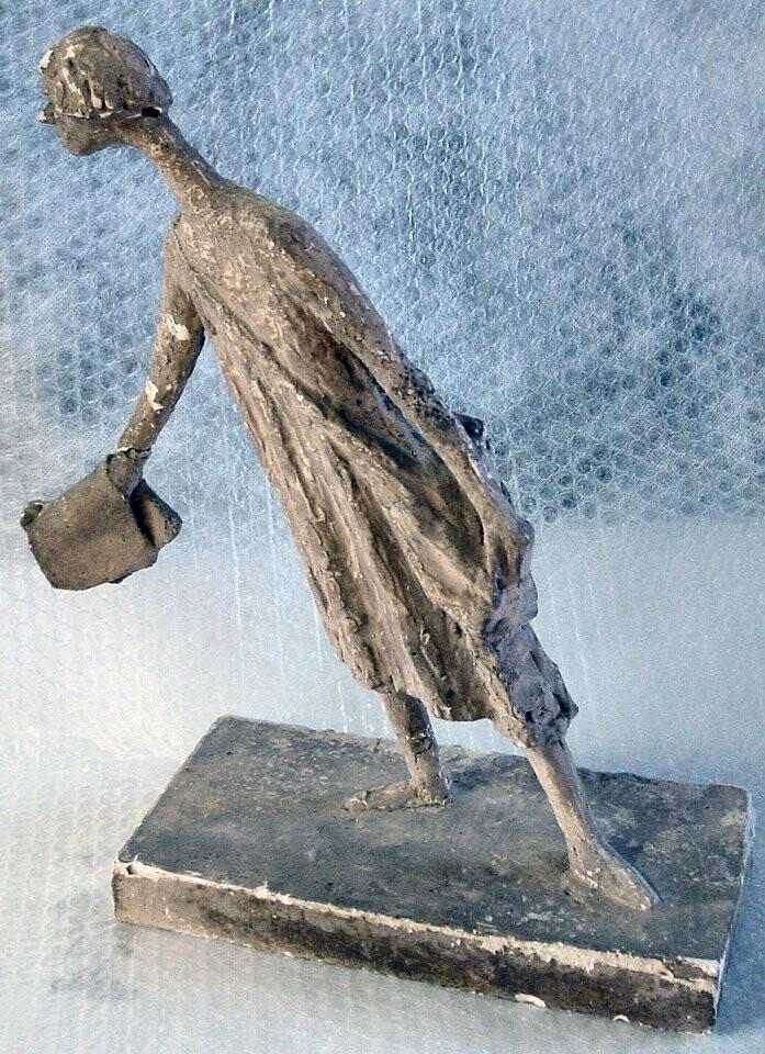 Beschrijving van het (kunst)werk: Beeld van een schuin staande vrouw