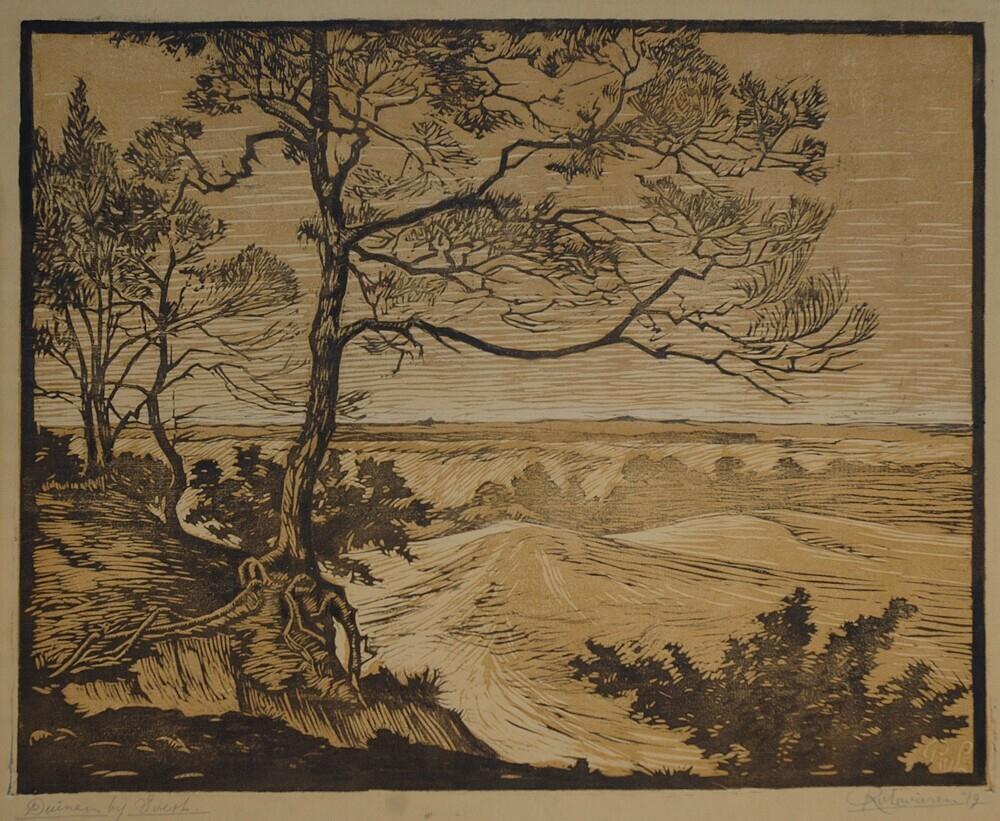 - SignatuurR v lavieren '19 (r.o. in potlood); Duinen bij Soest (l.o. in potlood); RvL (r.o.)