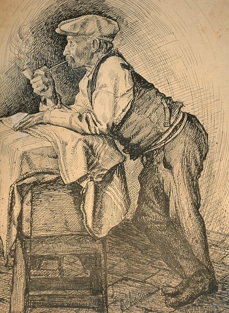 - Leunende man met pijp en pet
