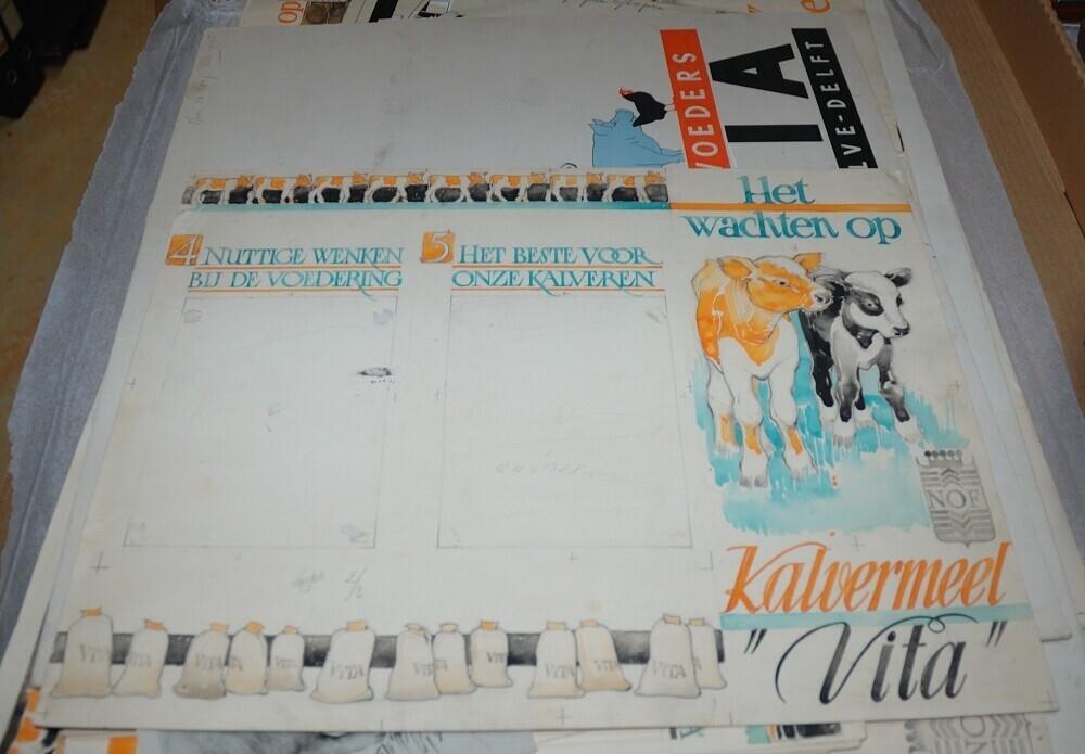 - Ontwerptekening van reclamefolder 'Het wachten op Kalvermeel "Vita"'