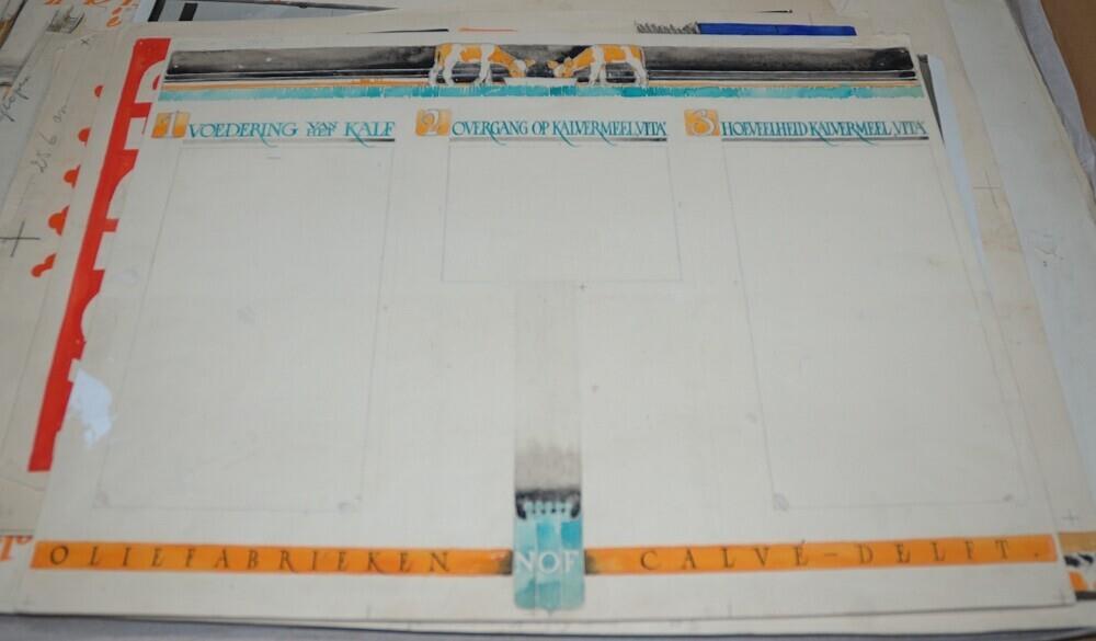 - Ontwerptekening van reclamefolder 'Het wachten op Kalvermeel "Vita"'