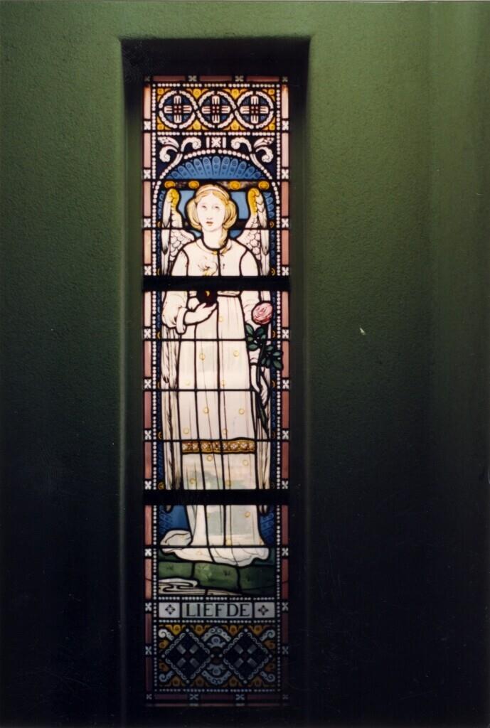 - Glas-in-lood trapraam met allegorische voorstelling van de 'Liefde'