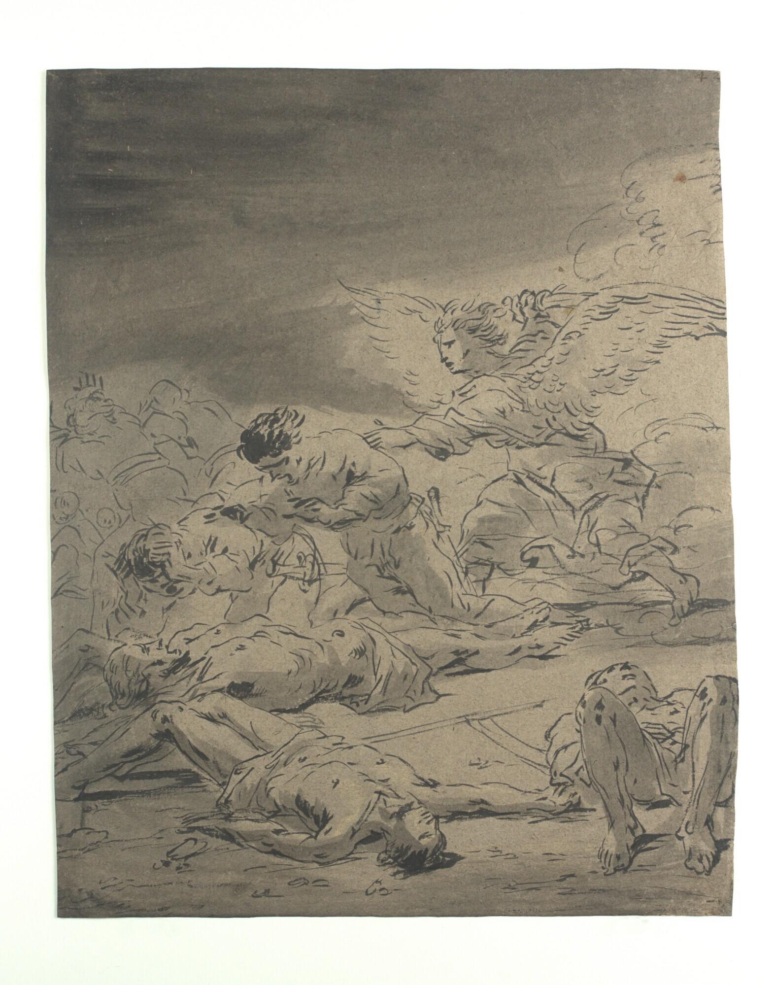 - donkergrijs lompenpapier, zonder watermerk met vergé, penseel in zwart en grijs in combinatie met grijze wassingen en bruine dekverf