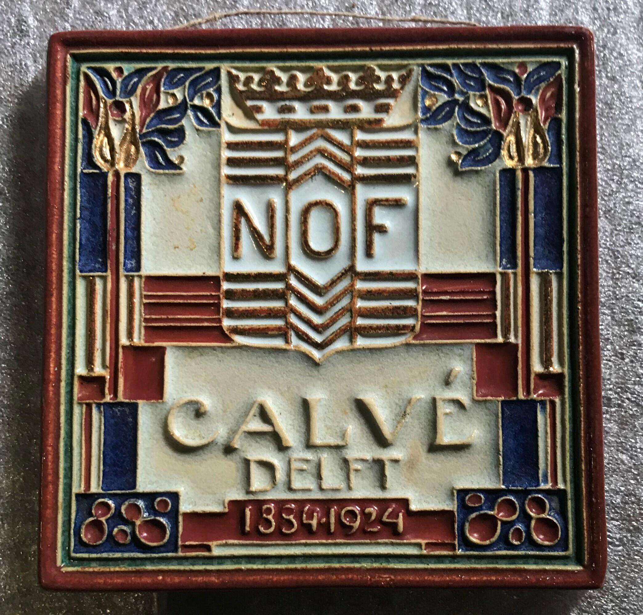 - Cloisonné tegel 'NOF Calvé Delft 1884-1924'