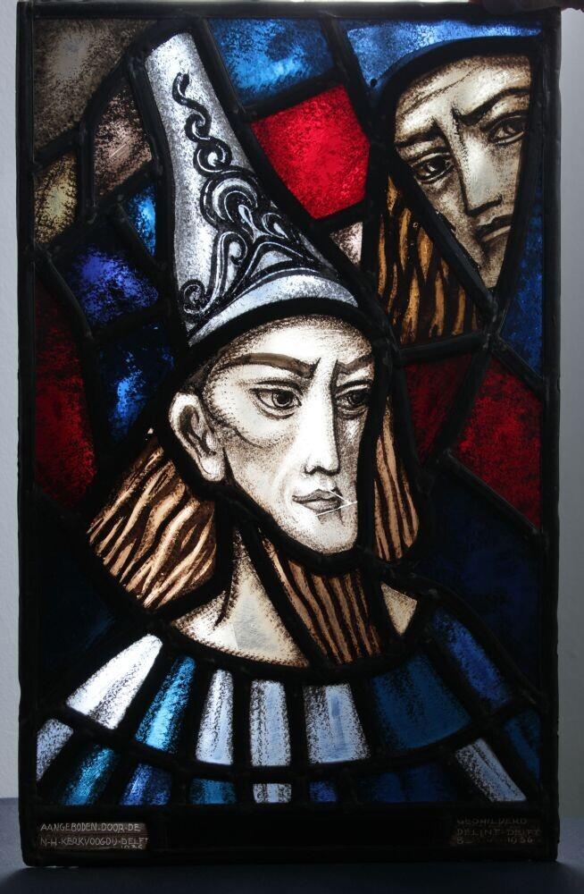'aangeboden door de N-H-kerkvoogdij-Delft 1935' (jaartal niet helemaal duidelijk)