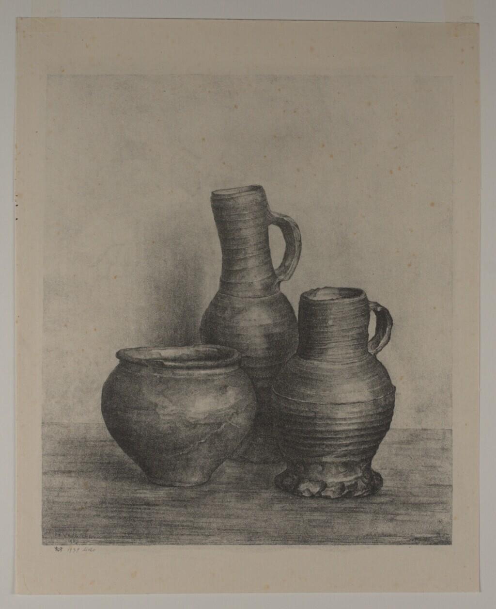 - SignatuurMV 1939 litho (in potlood, l.o.) ; M. Versteeg 1938 (in plaat, l.o.)