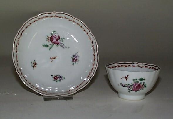 - porselein, decoratie in famille rose-techniek in Lowestoft-stijl in groen, paars, lila en zwart
