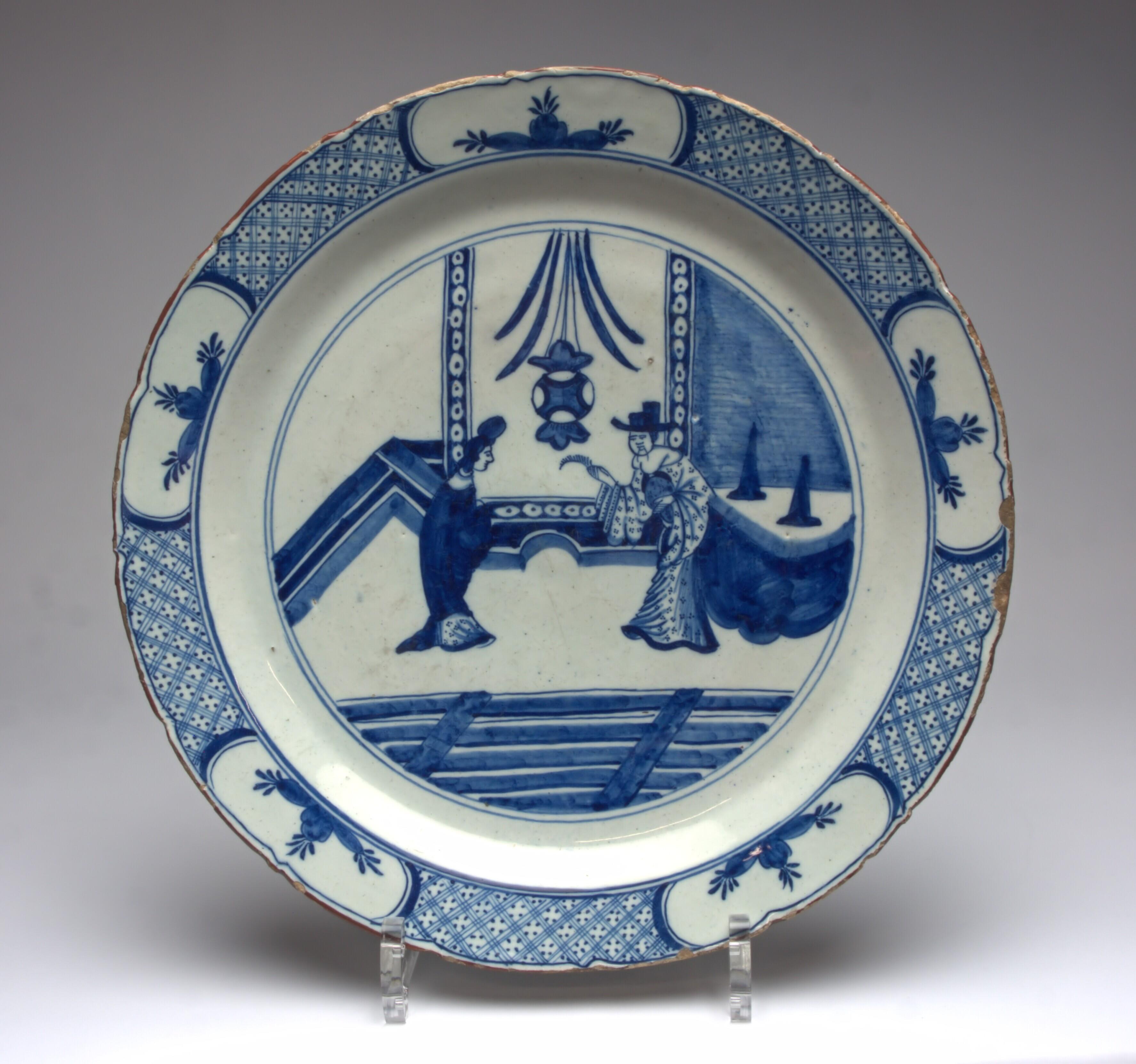 - Bord gedecoreerd met een Chinoiserie voorstelling