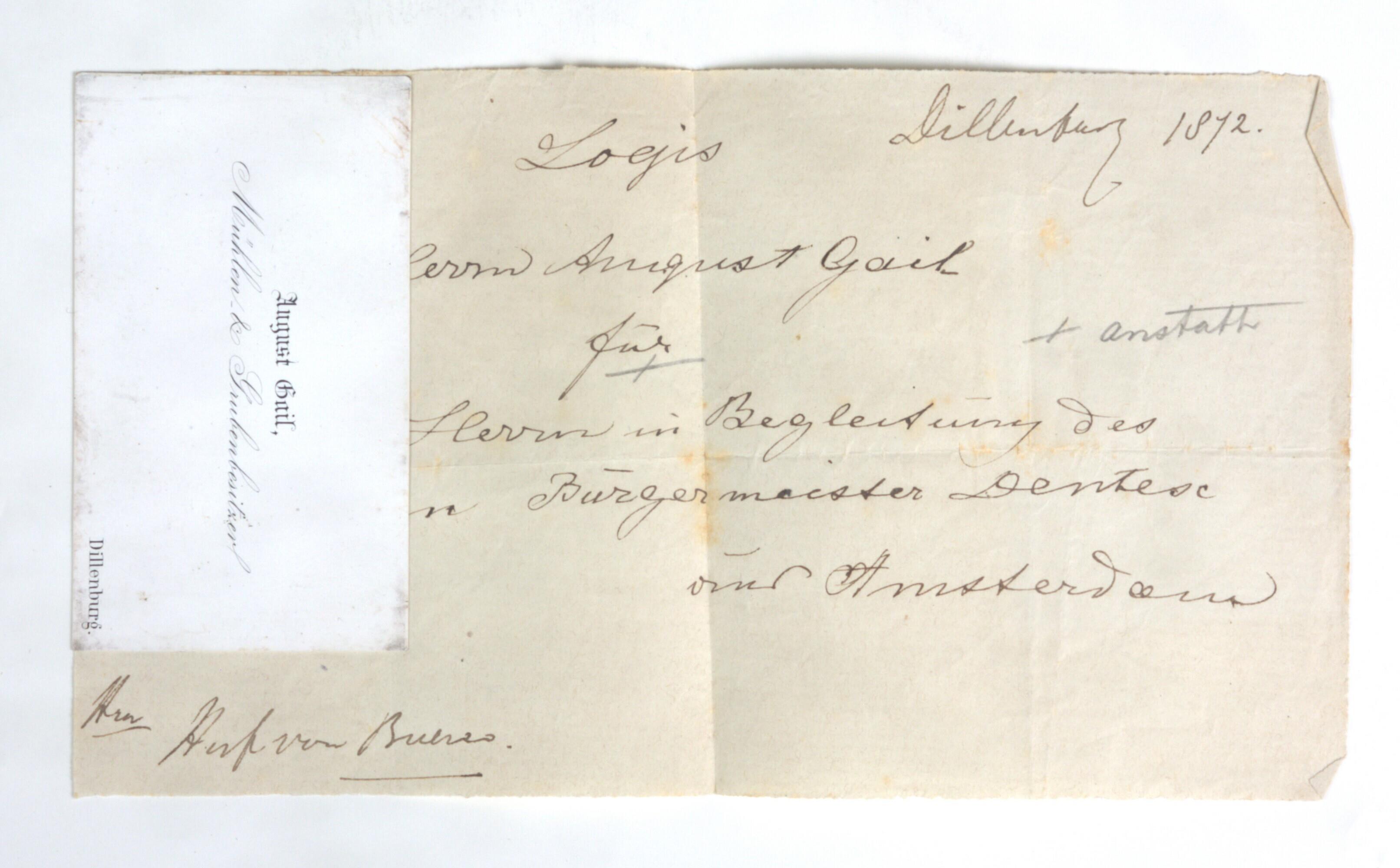 - Inkwartieringsbiljet August Gail te Dillenburg, 1872
