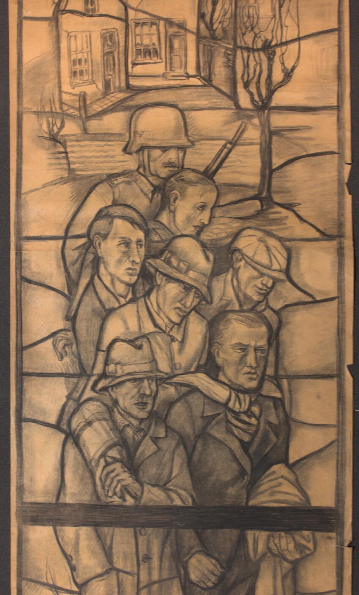 Karton glas-in-lood oorlogsgedenkraam consistorie Hervormde kerk, Hazerswoude