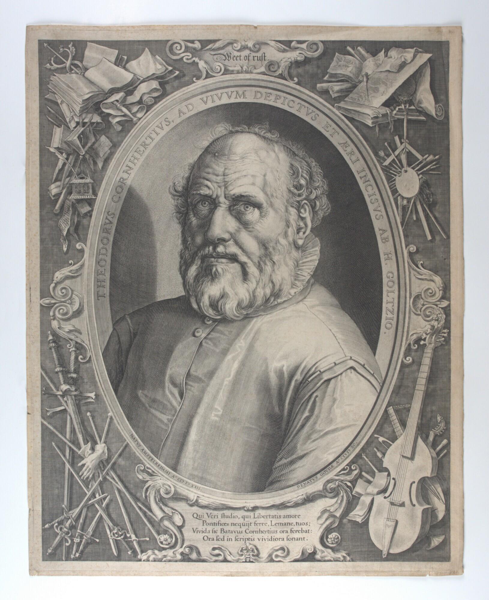 Portret van Dirk Volkertsz. Coornhert, Hendrick Goltzius, 1576-1617, gravure, PDP 381