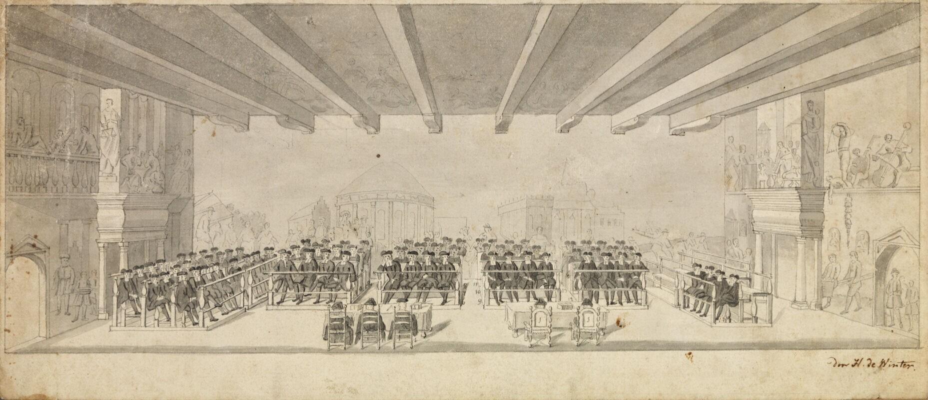 - De eetzaal van het Prinsenhof tijdens de Synode van Zuid-Holland in 1754