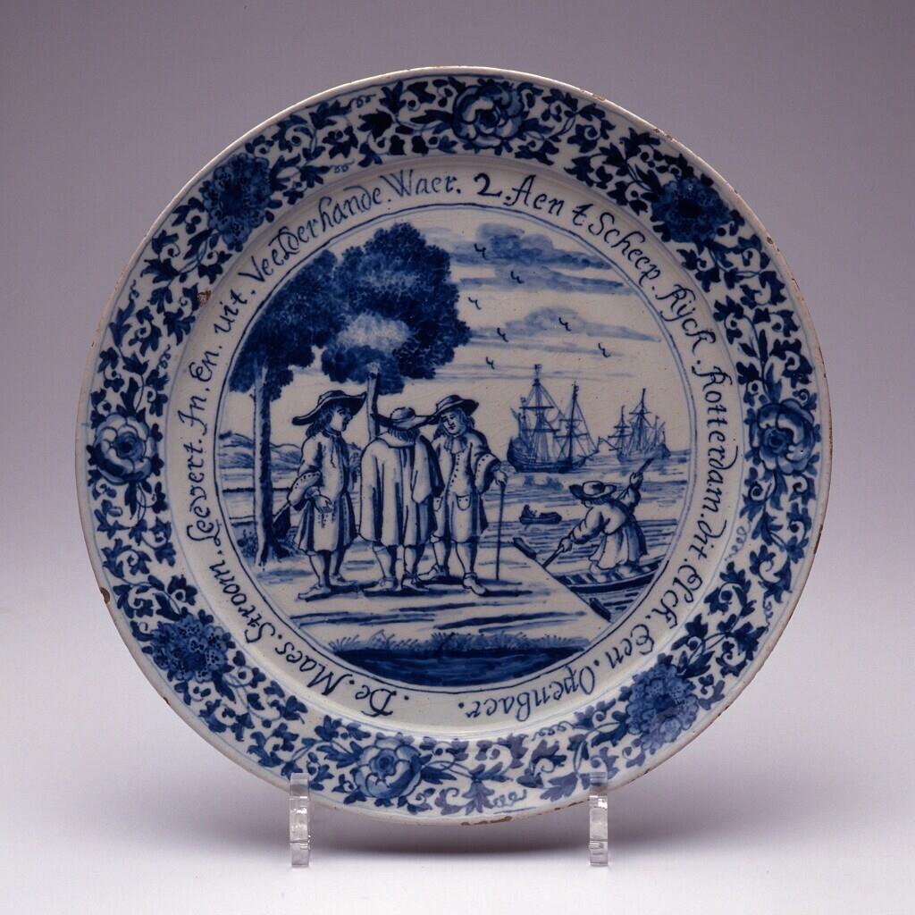 Inscription.De.Maes.Stroom.Levert.In.En.uit.Veelderhande.Waer.2.Aen t Scheep.Rijck.Rotterdam.dit.Elck.Een.Openbaer. (voorkant)