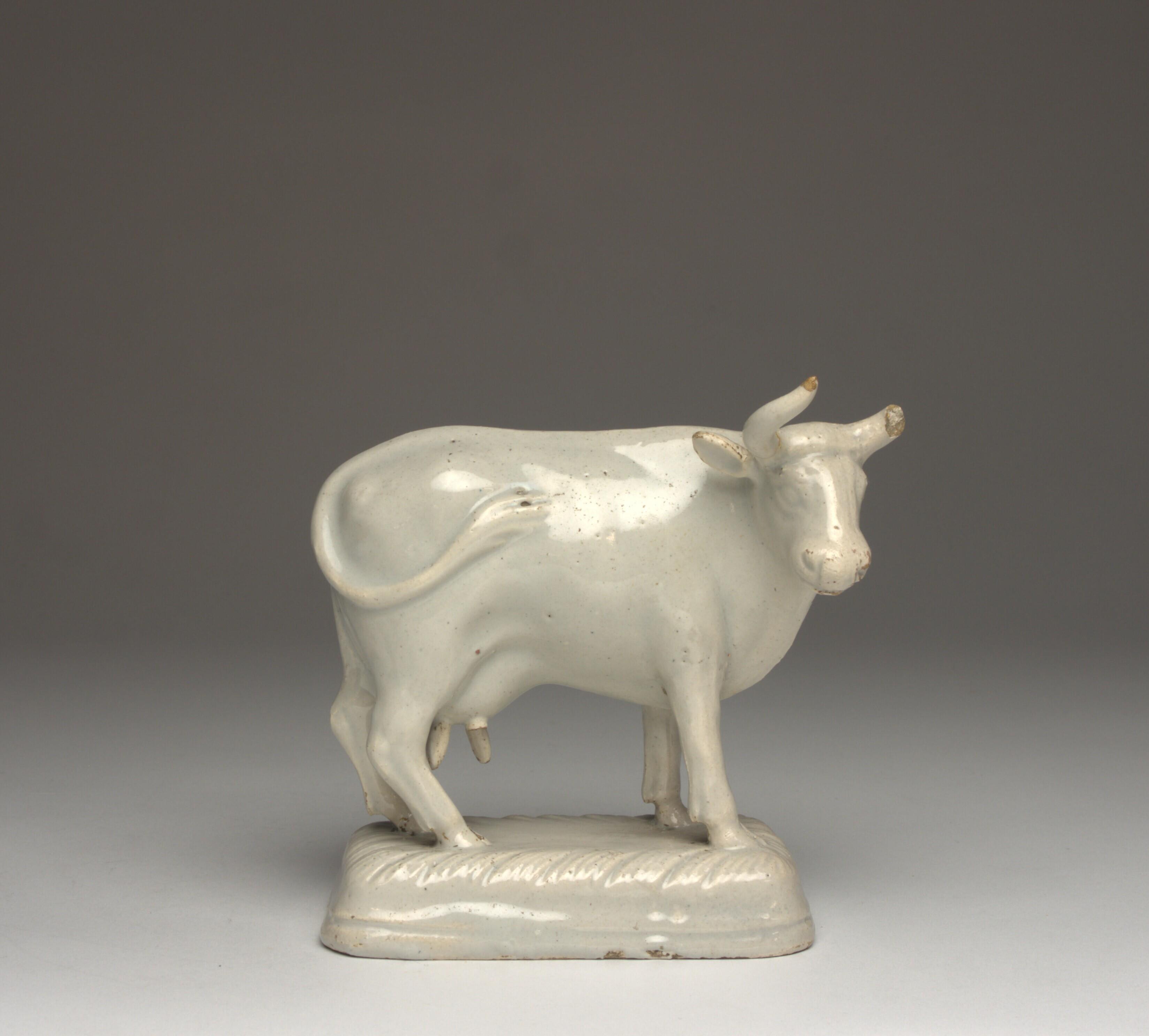 koetje staand op rechthoekig voetstuk; kop rechts (vanuit beschouwer); ongedecoreerd;