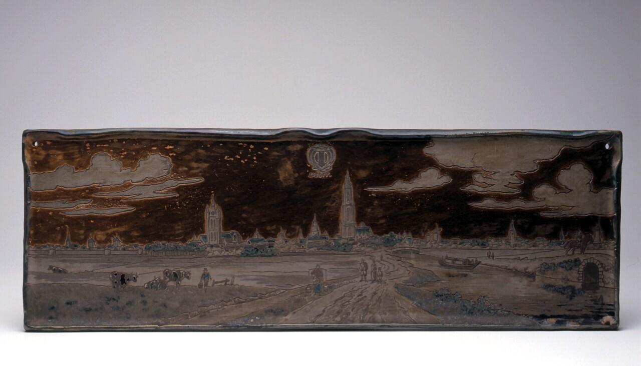 Plaque met zicht op Delft